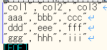 例えば、以下の3行のテキストはCSVファイルを表現しています。区切り文字や囲い文字を含めて1行目は「29桁」、2行目は「23桁」、3行目は「11桁」と各行で合計桁数がバラバラです。