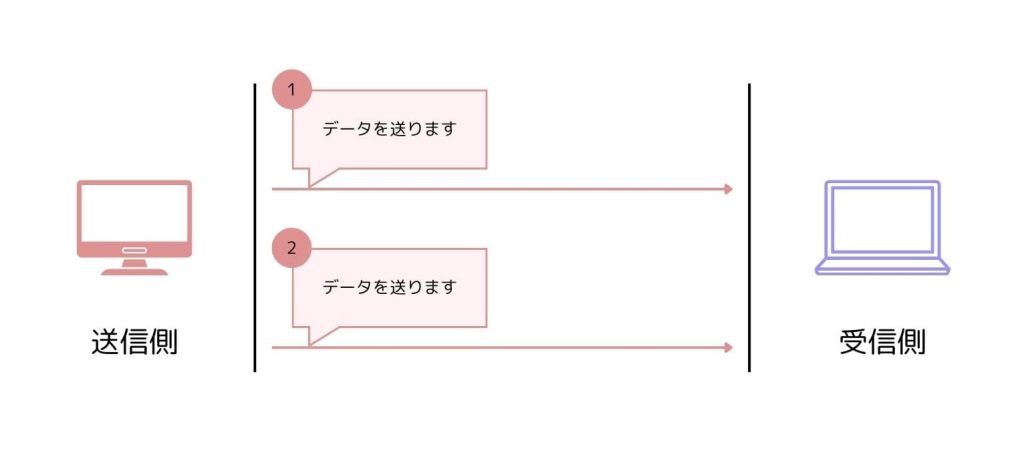 逆に通信速度が速いUDPはコネクションレス型のプロトコルとも呼ばれており、相手と対話するような通信を行いません。送ったら送りっぱなしという一方的な通信方法のおかげで速度を担保できますが、通信が必ず届いているかの保証ができません。