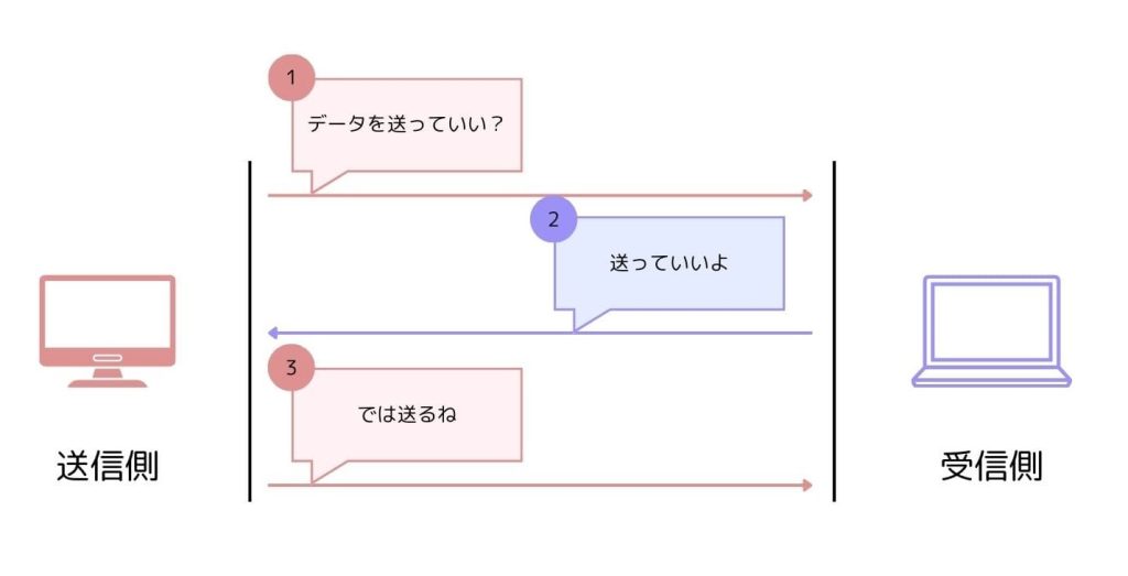 TCPはコネクション型のプロトコルと呼ばれており、相手と確実に通信できるかどうかを重視しています。ただし、相手と対話するように通信するため、通信速度はUDPに比べて遅いという特徴があります。