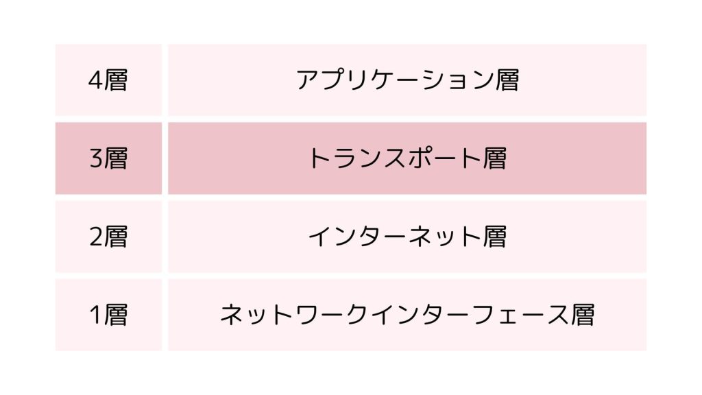 通信相手とのコネクションの確立、どのアプリケーションに接続するかを識別するためのポート番号の管理、データ送信時の欠落を検知し必要に応じて再送するなどの機能があります。