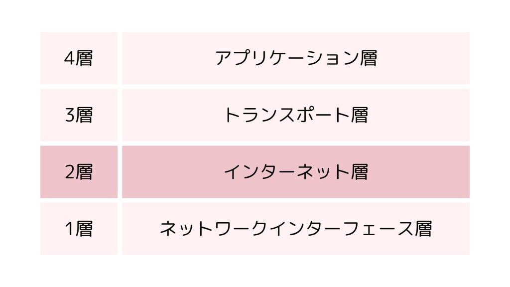 2層名に位置するインターネット層はデータを宛先まで届ける役割を担っています。